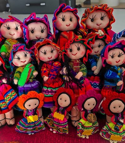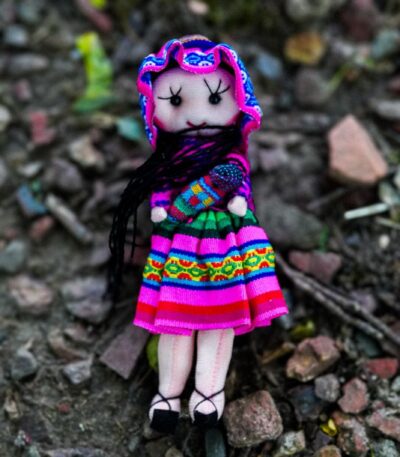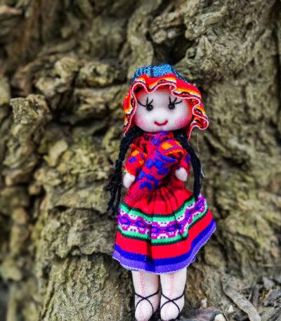 lalka z Peru z dzieckiem w odcieniu czerwonym