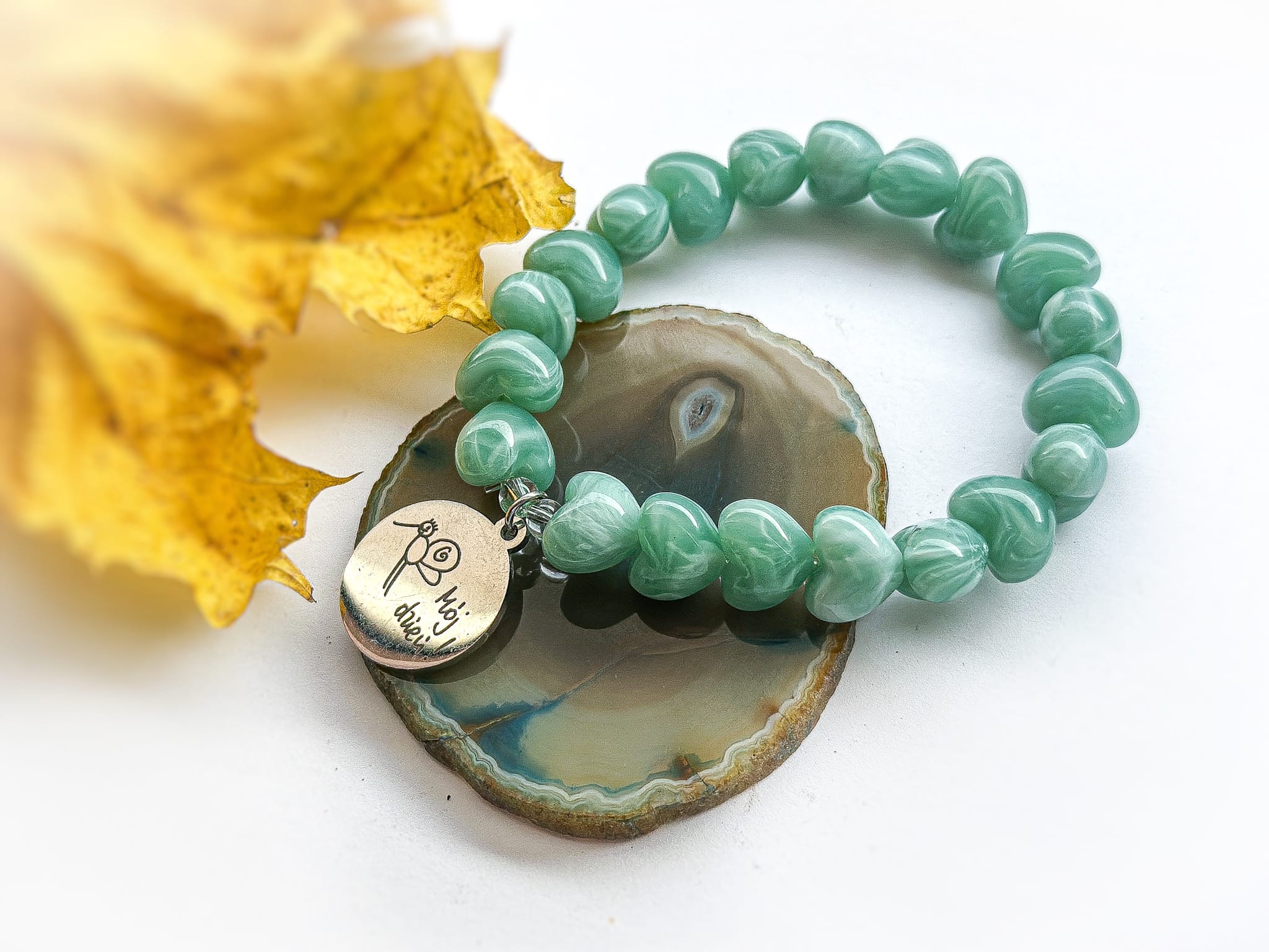 Damska bransoletka z zielonego agatu to propozycja o spokojnej, harmonijnej estetyce. Odcienie zieleni tworzą naturalną, kojącą kompozycję, która dobrze prezentuje się zarówno na co dzień, jak i w bardziej eleganckich zestawach.