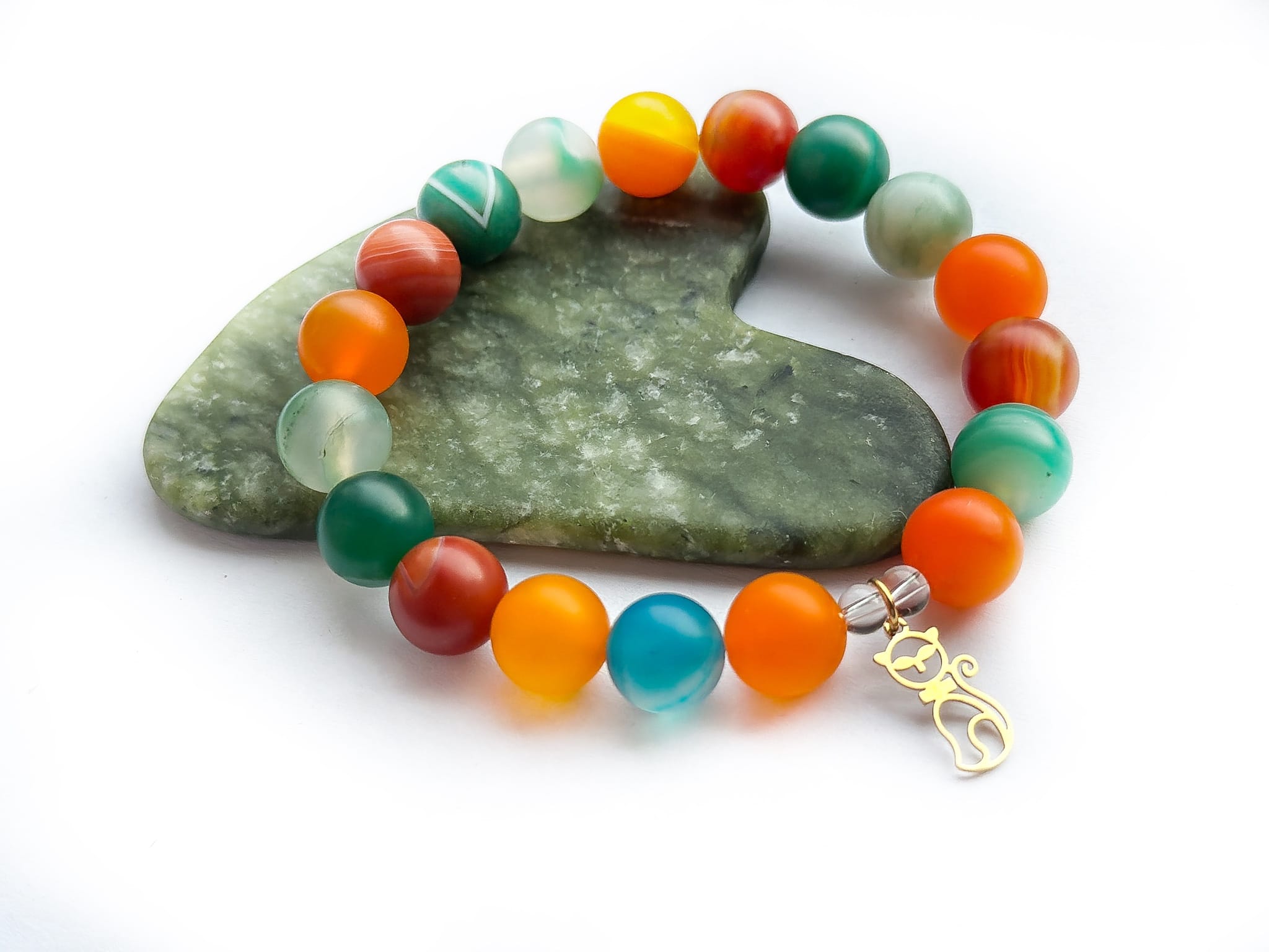 Agat od wieków uznawany jest za kamień równowagi i spokoju. Niesie w sobie symbolikę odrodzenia, harmonii i nadziei. Wspiera wewnętrzną siłę, ułatwia wyciszenie i pomaga odnaleźć stabilność w codziennym życiu. To kamień, który przypomina, że harmonia z samym sobą jest fundamentem dla wszystkiego, co tworzymy.