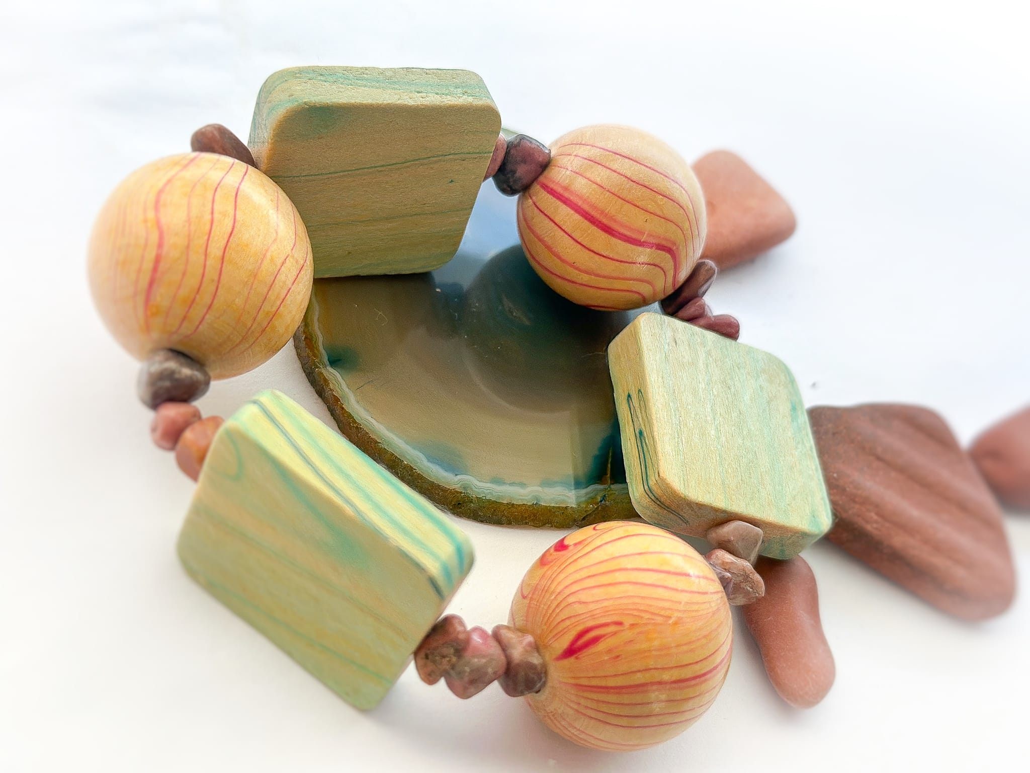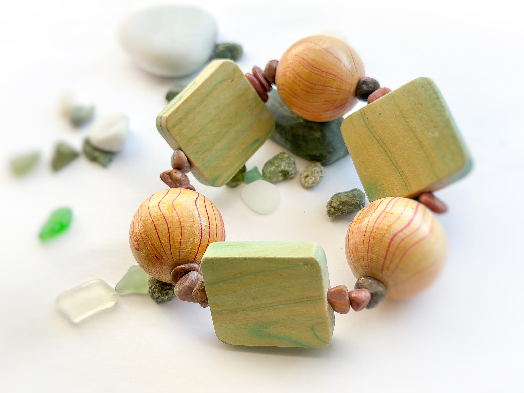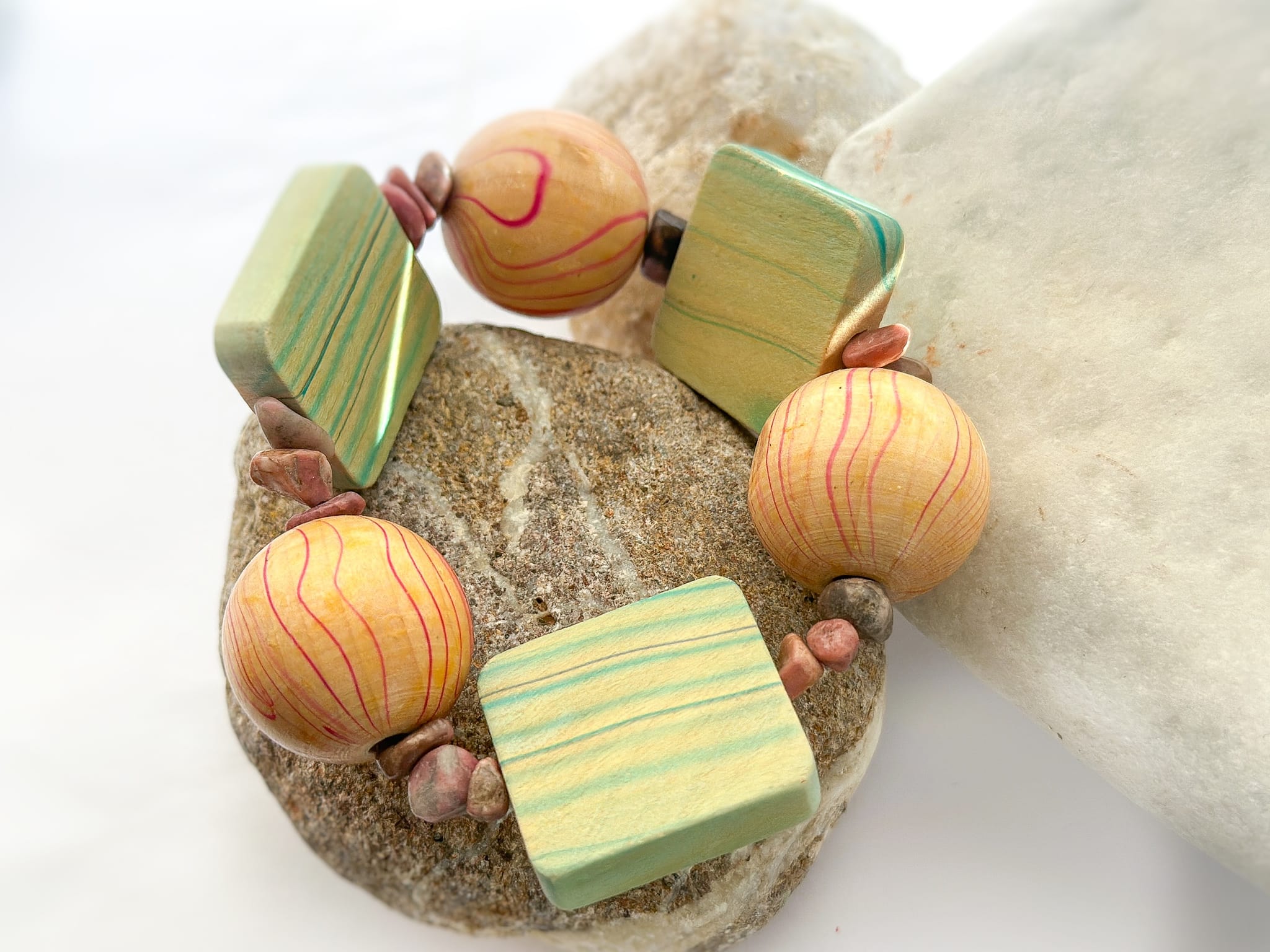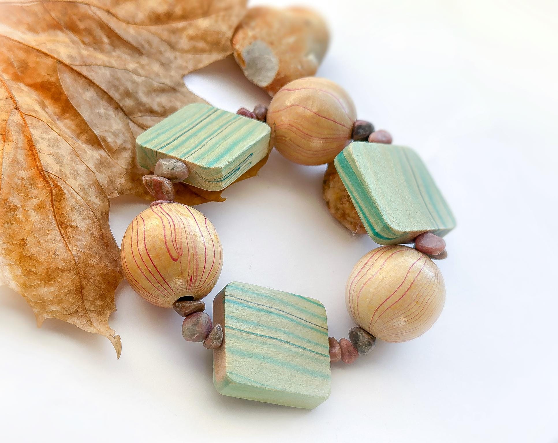 Bransoletka z Drewna bukowego, Rodonitu –