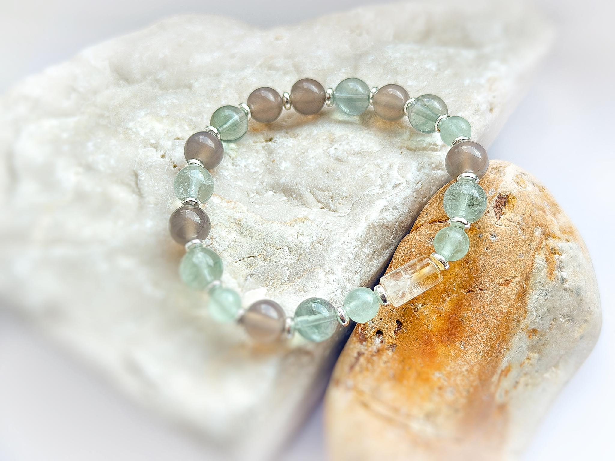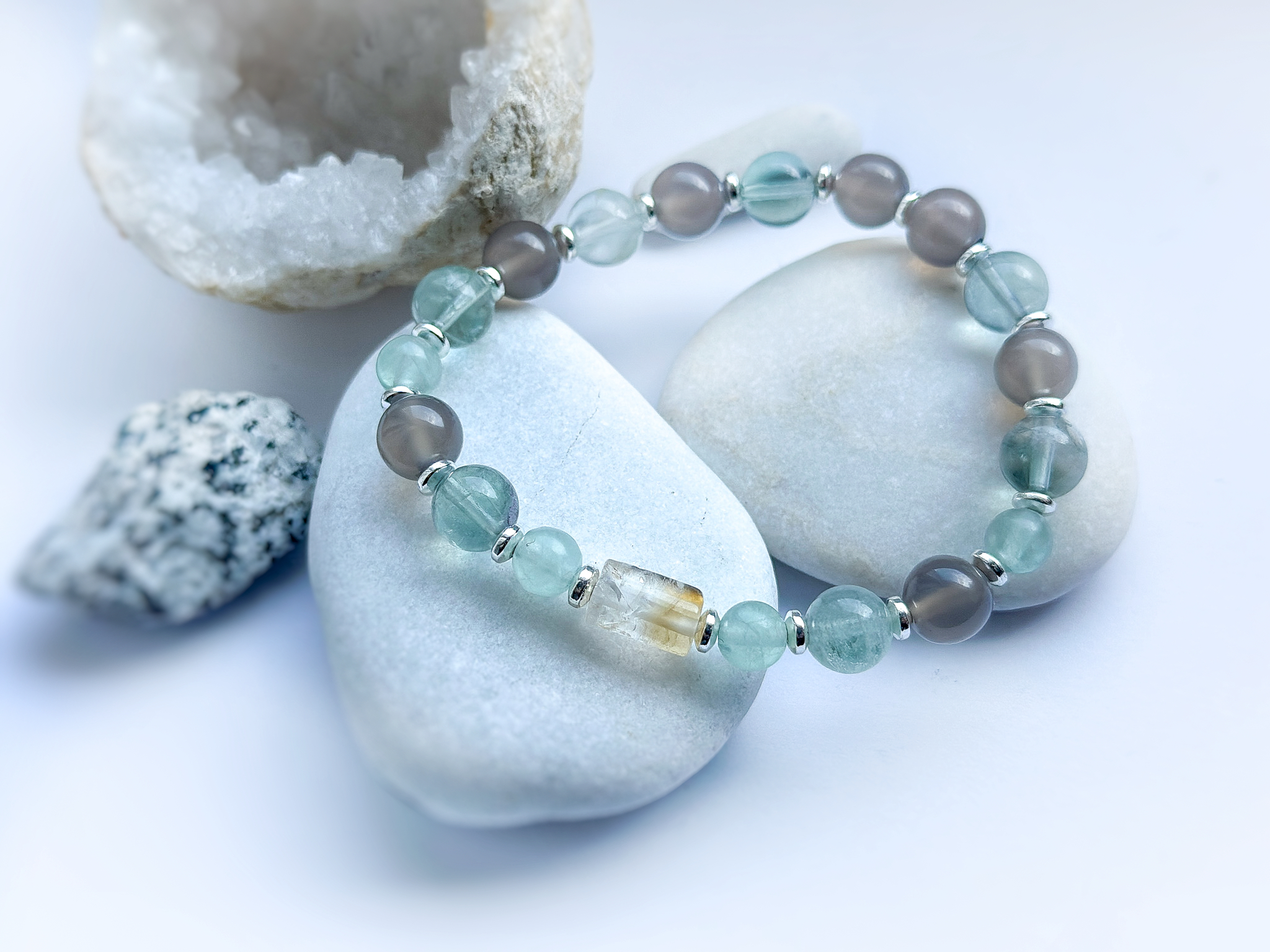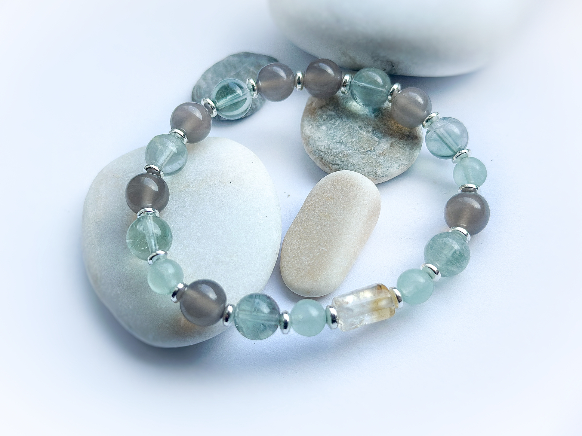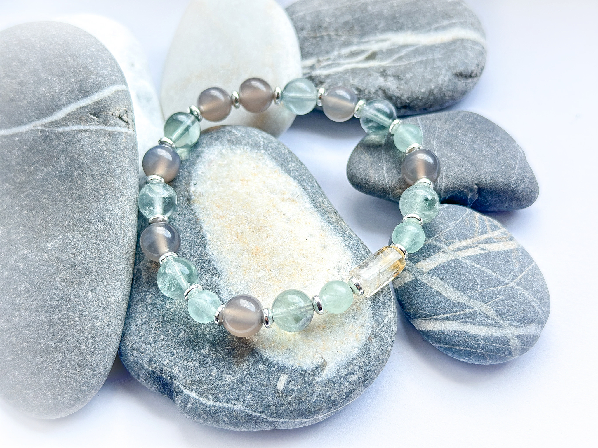 - Kamienie: naturalny fluoryt, szary agat, cytryn