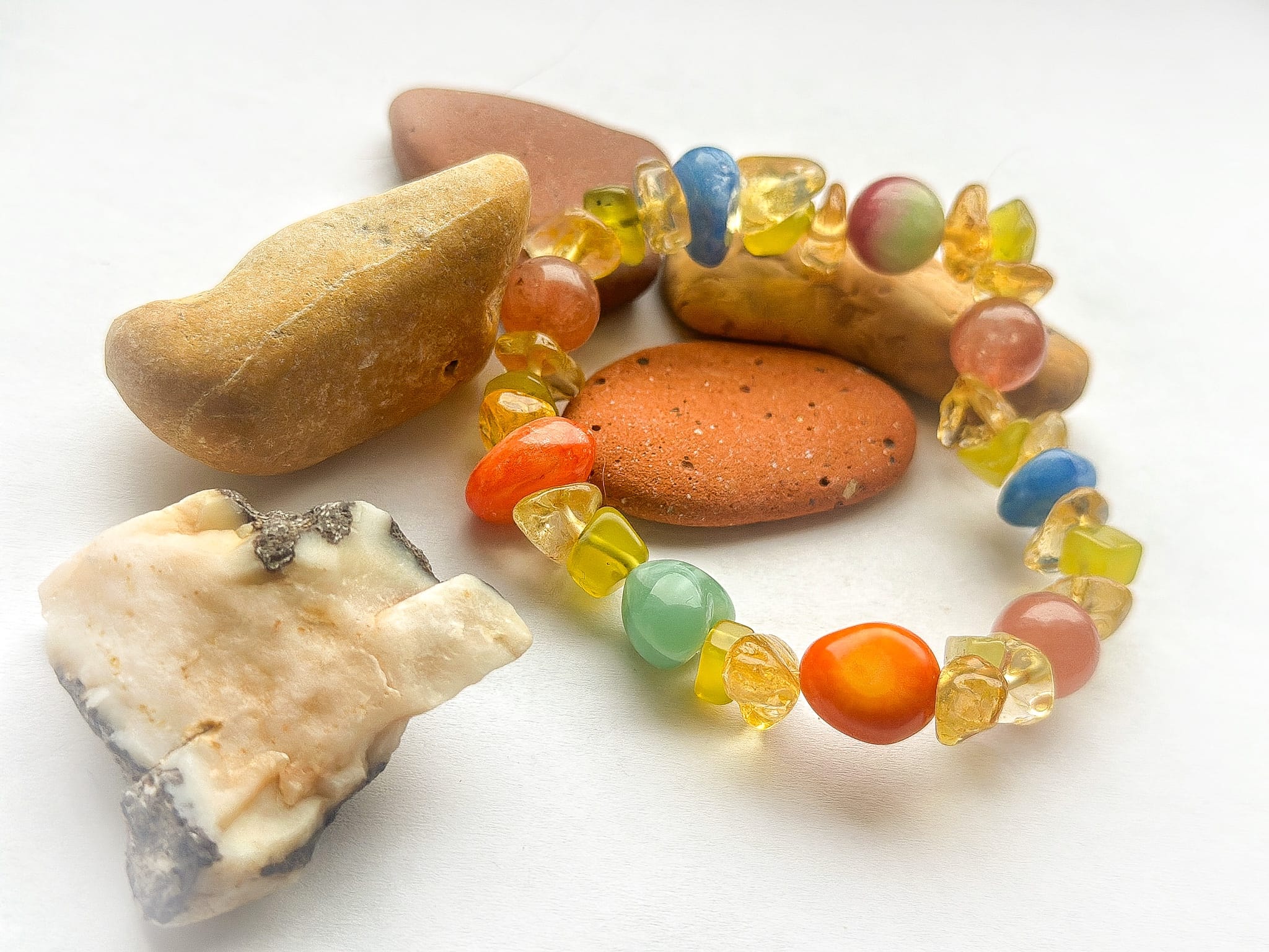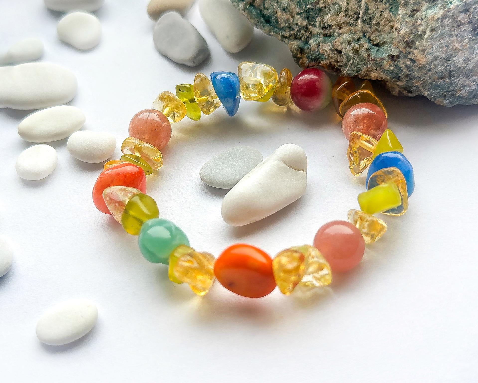 Kolorystyka: zielony ,żółty , czerwony , niebieski , naturalne różnice w strukturze kamieni