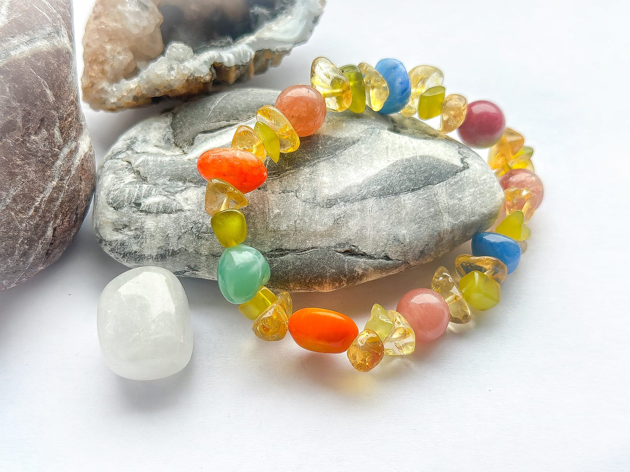 Materiał: jadeit, ,cytryn ,oliwin ,azuryt , zoisyt z rubinem , czerwony jaspis ,kamień słoneczny