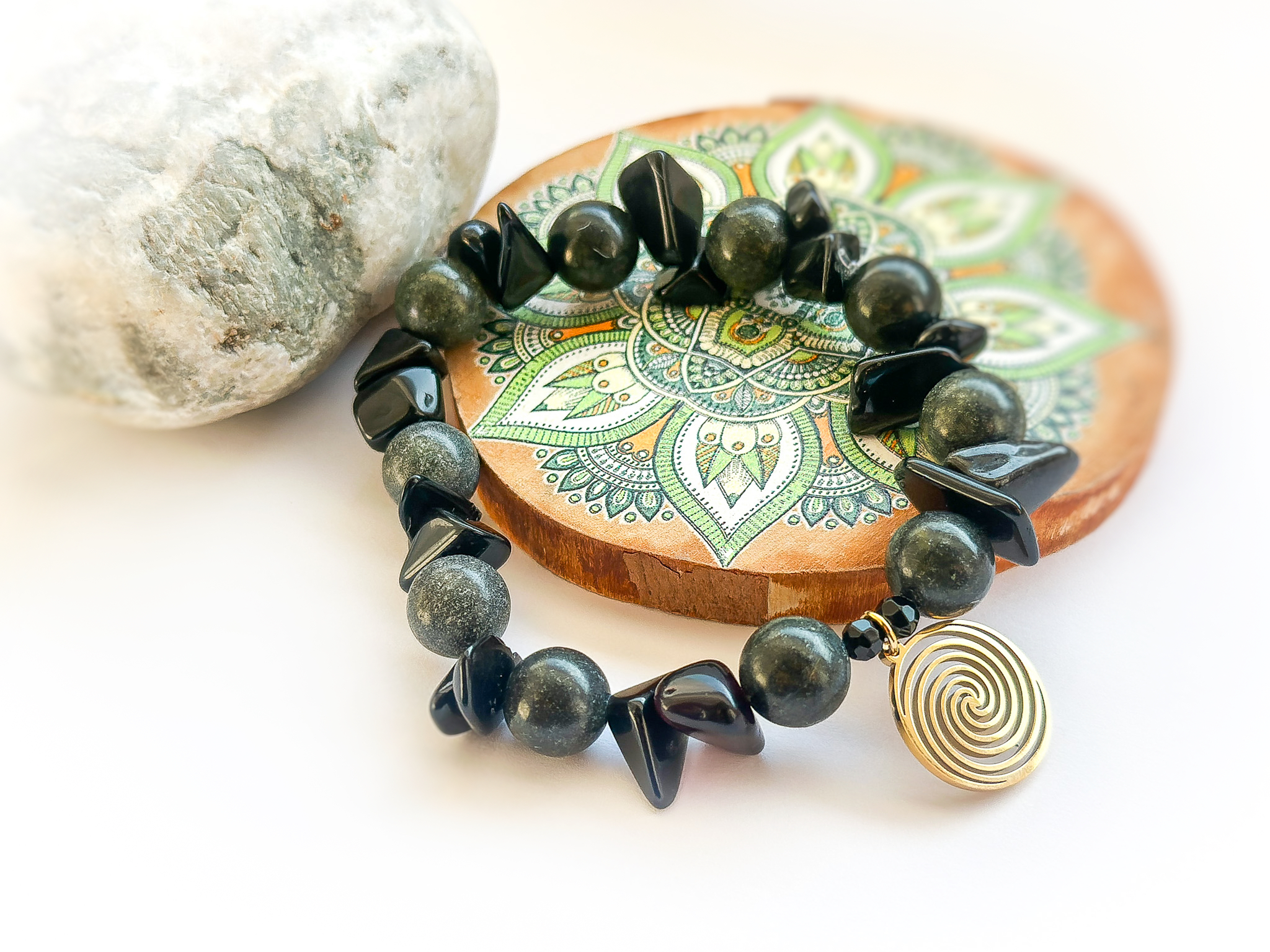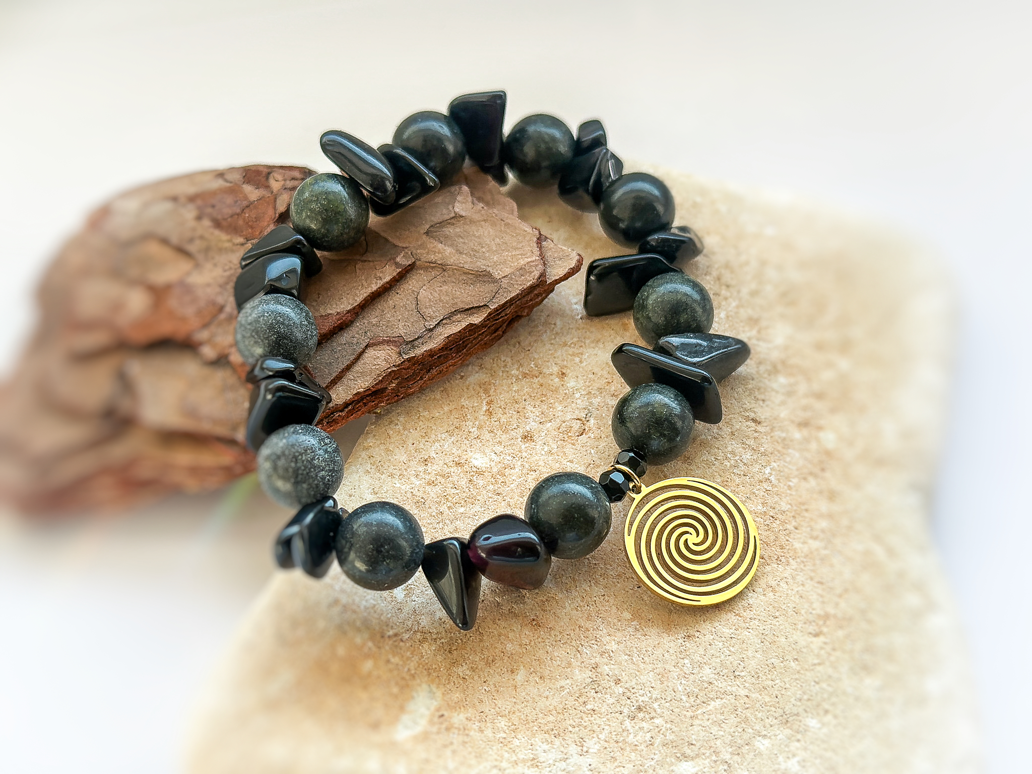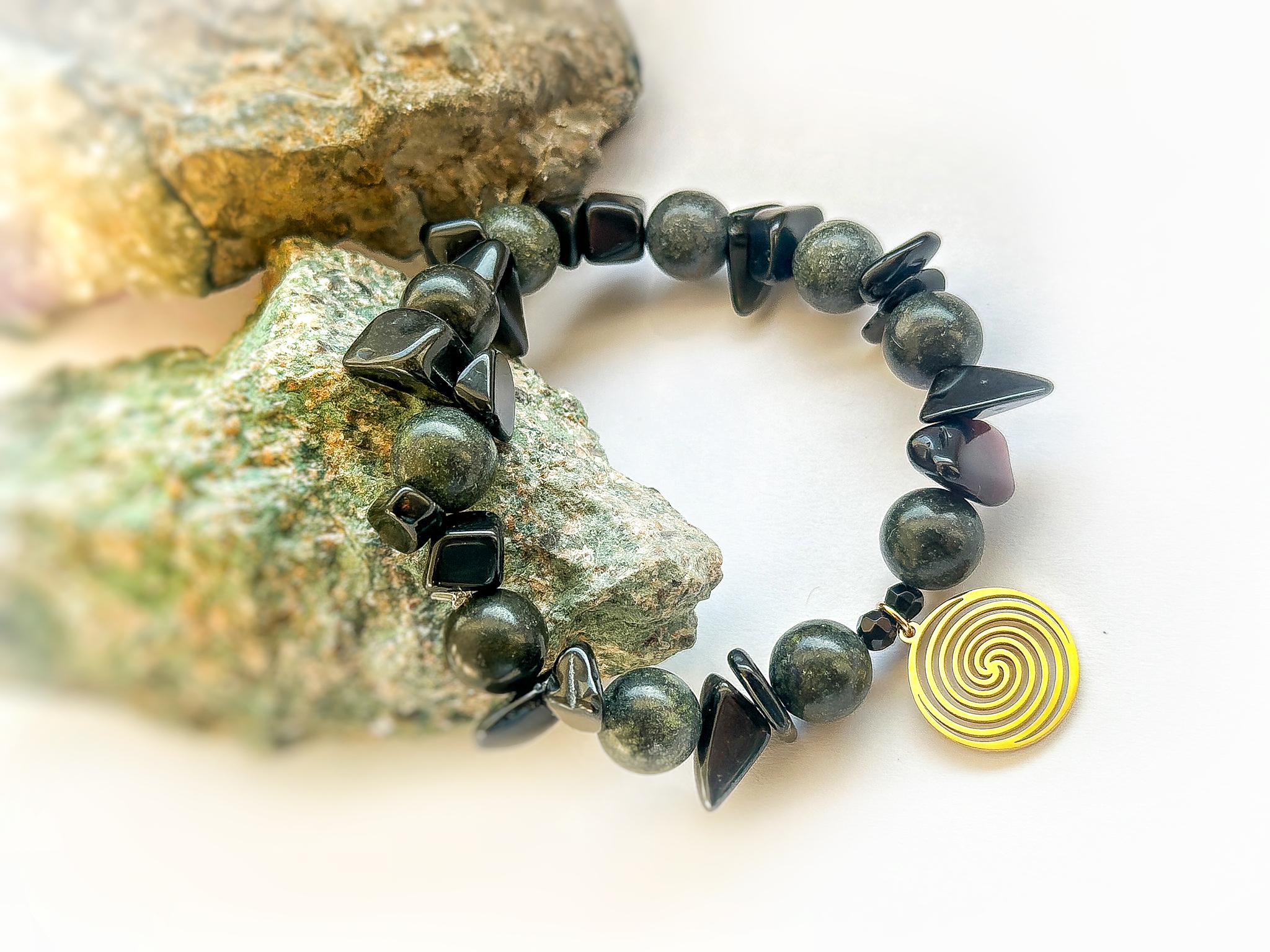 Bransoletka z jaspisu i turmalinu z przywieszką spirala
