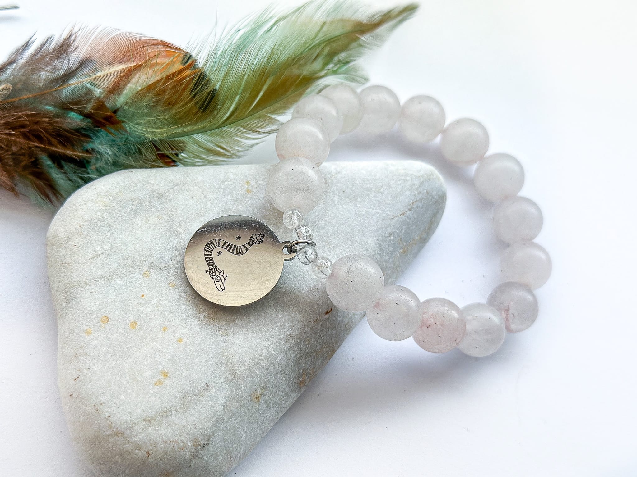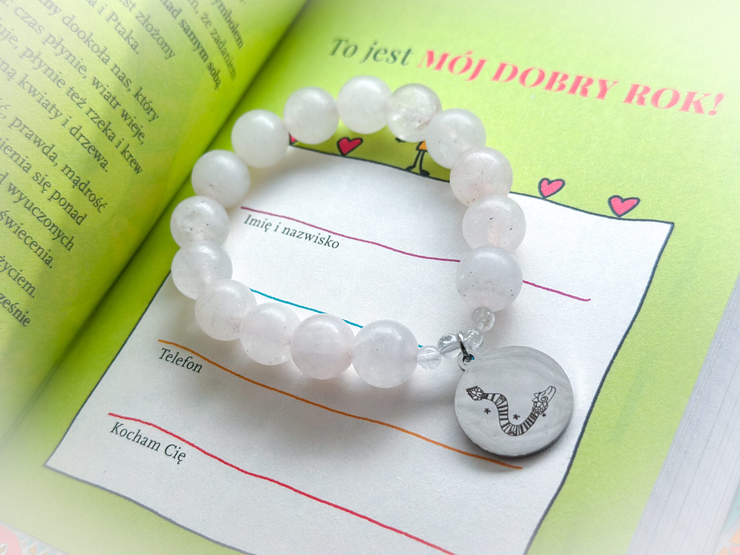 Najnowsza bransoletka została stworzona z kwarcu – oraz unikatowej przywieszki z rysunkiem Beaty Pawlikowskiej, przedstawiającym węża Quetzalcoatl, Pierzastego Węża.
