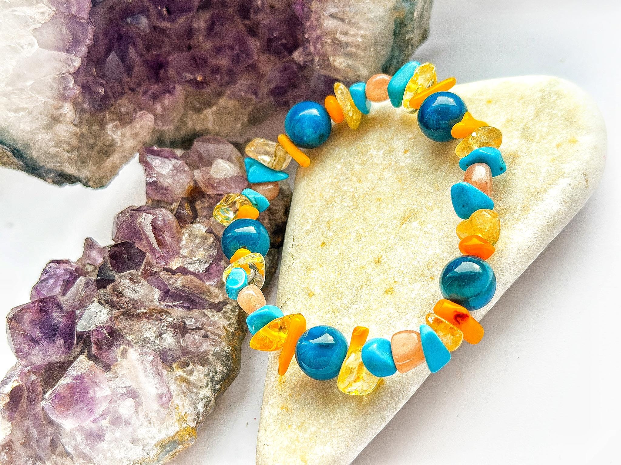 Połączenie tych kamieni tworzy energetyczną, radosną kompozycję  pełną światła, koloru i pozytywnej wibracji.