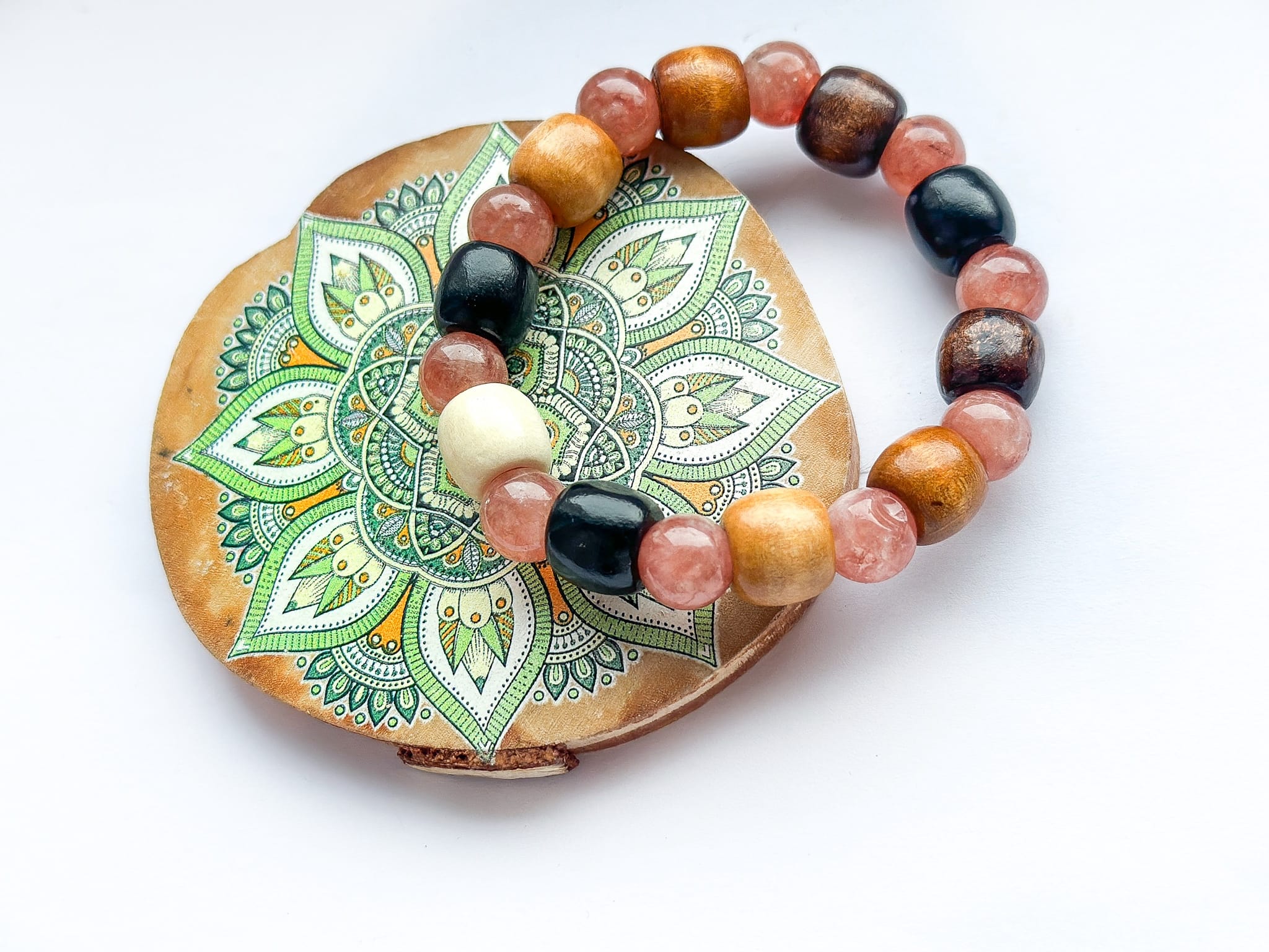 Dodatkowe elementy: drewniane koraliki naturalne i barwione