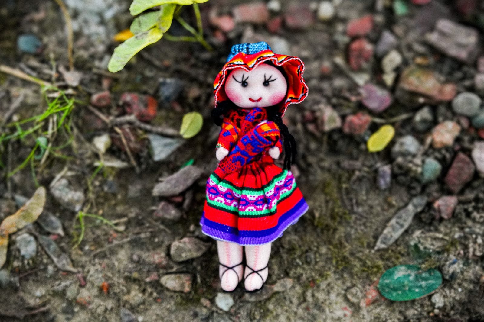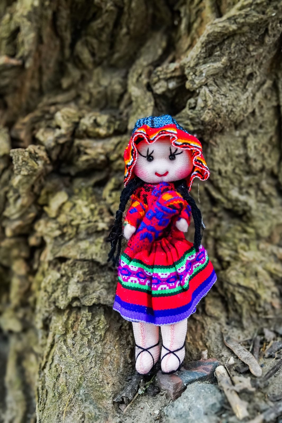 lalka z Peru z dzieckiem w odcieniu czerwonym
