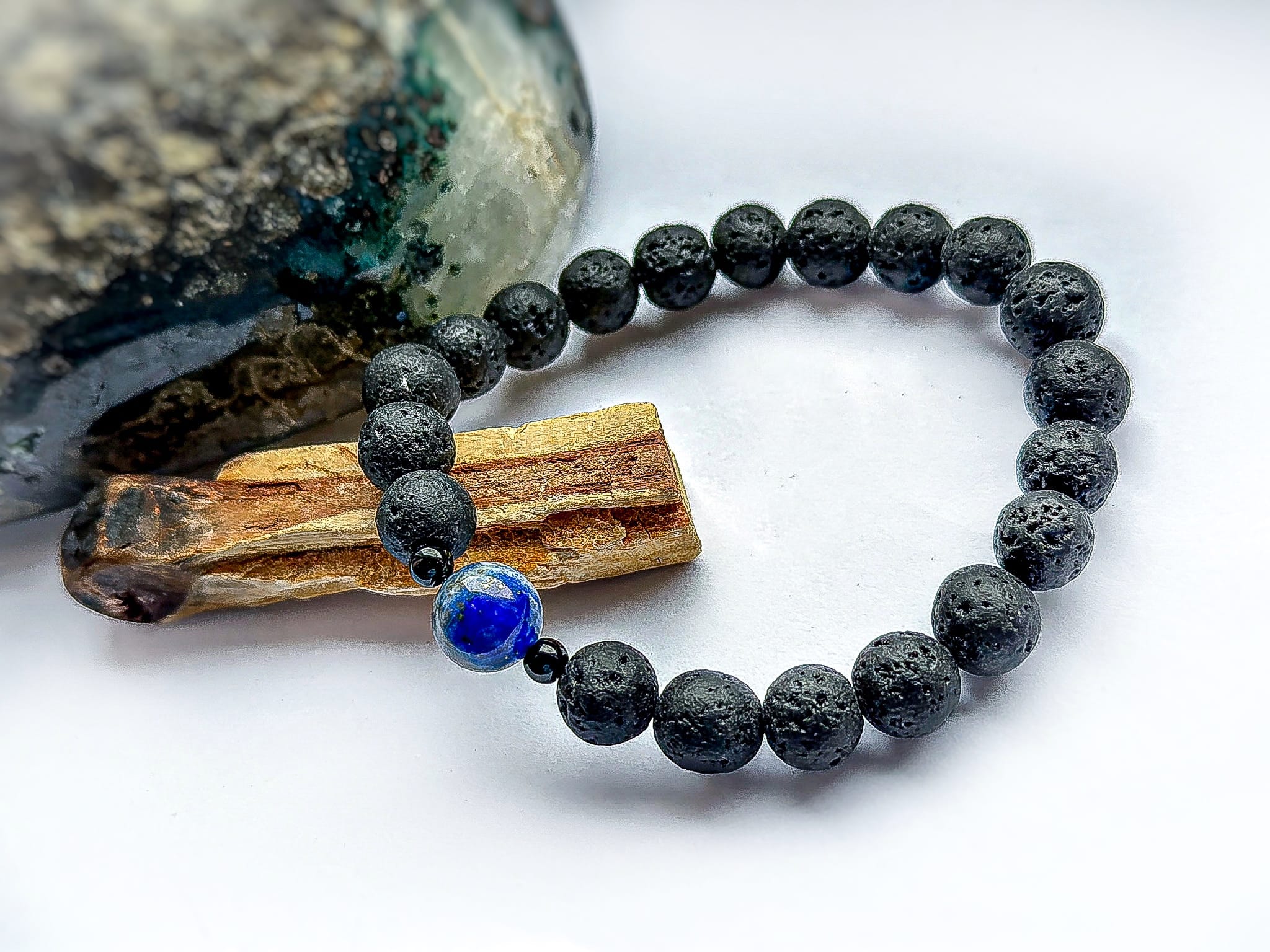 Materiał: czarny turmalin, lawa wulkaniczna, lapis lazuli