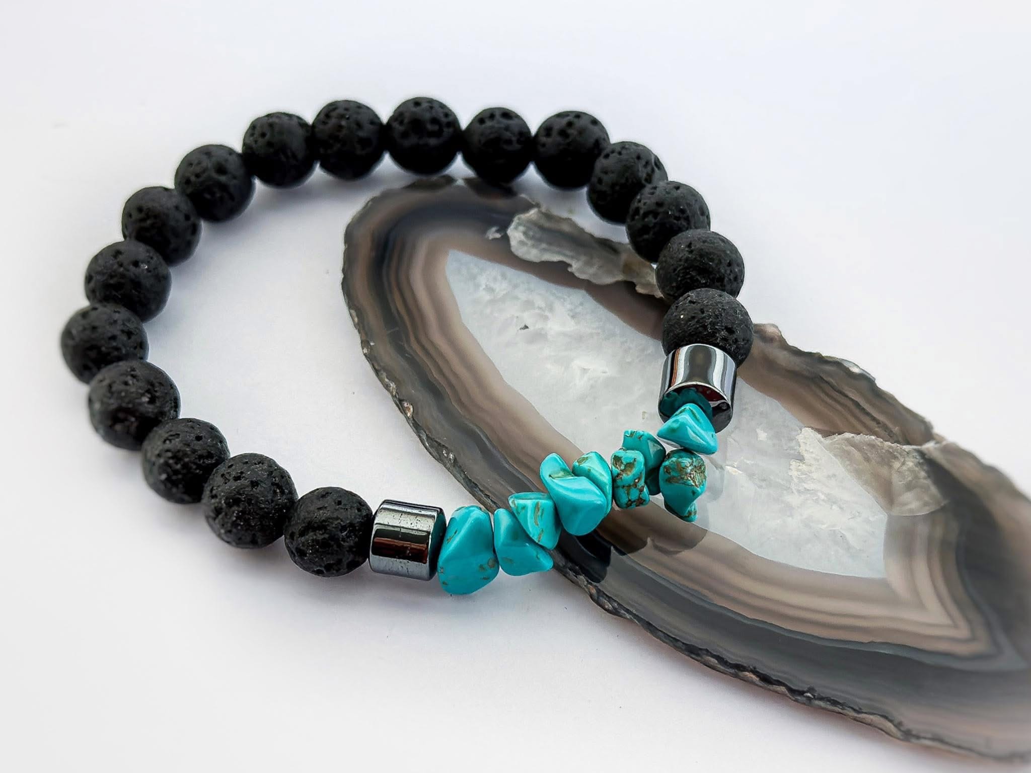 Materiał: hematyt, lawa wulkaniczna, turkus