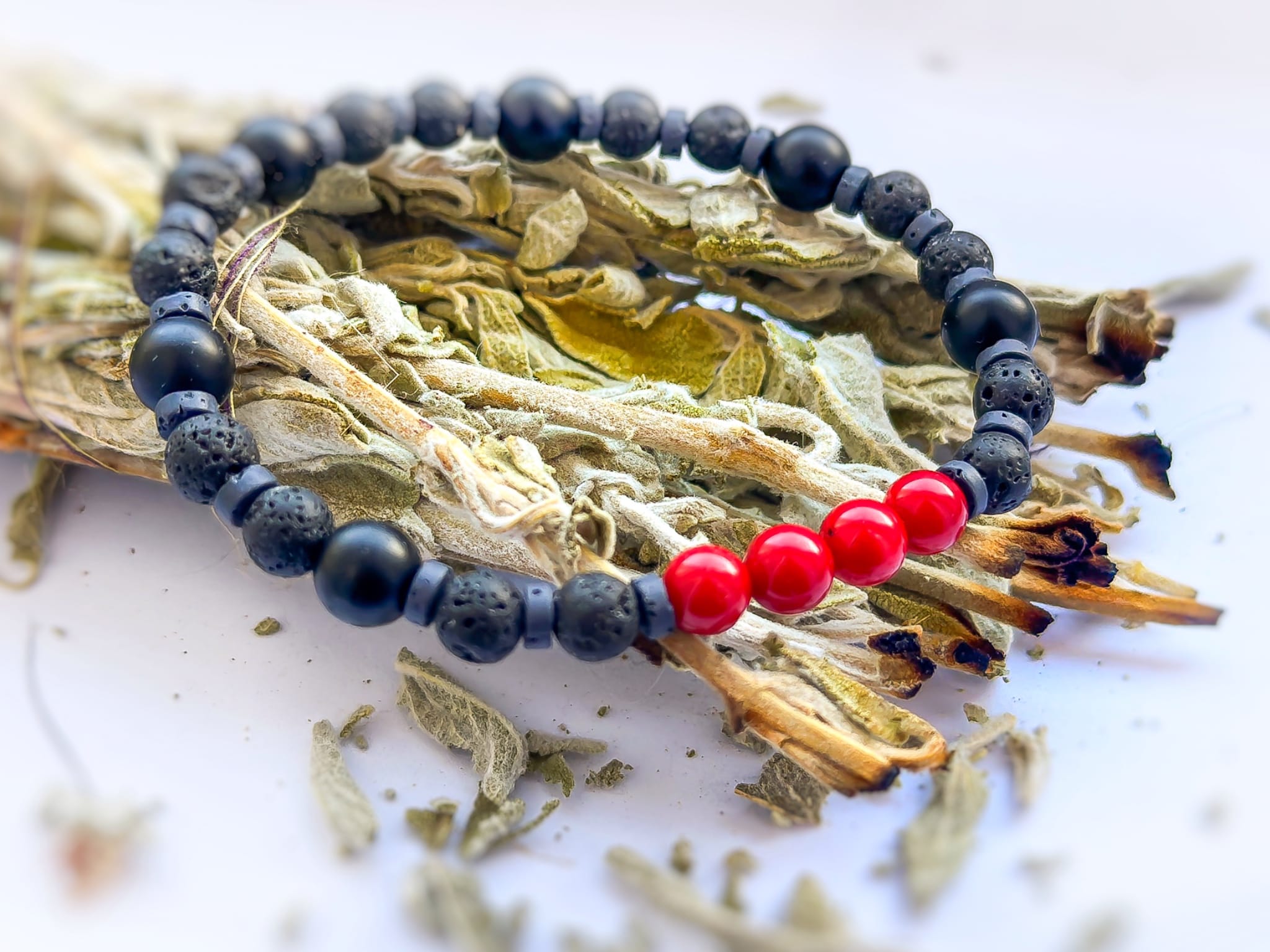 Męska bransoletka z lawy wulkanicznej i czerwonego jaspisu