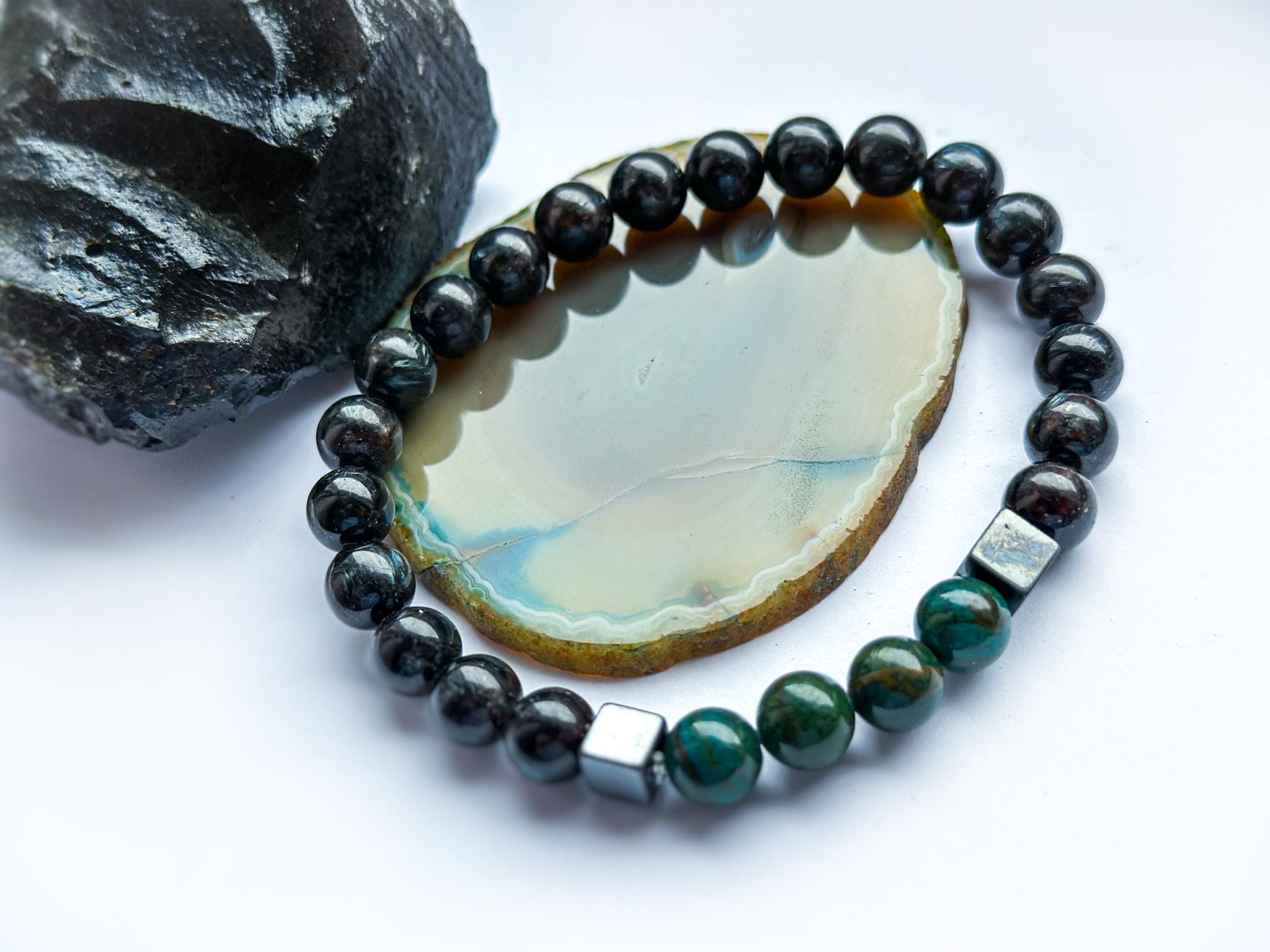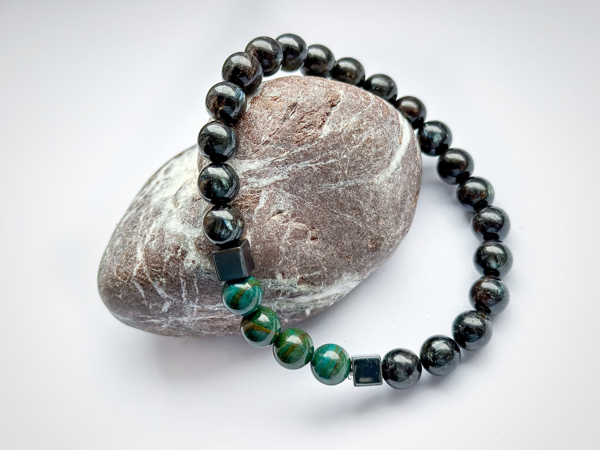 Męska bransoletka stworzona z kamieni, które od wieków kojarzone są z siłą, spokojem i odwagą — ale w taki sposób, który towarzyszy, a nie narzuca.