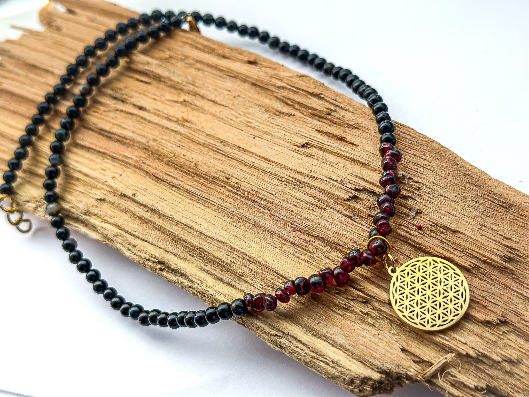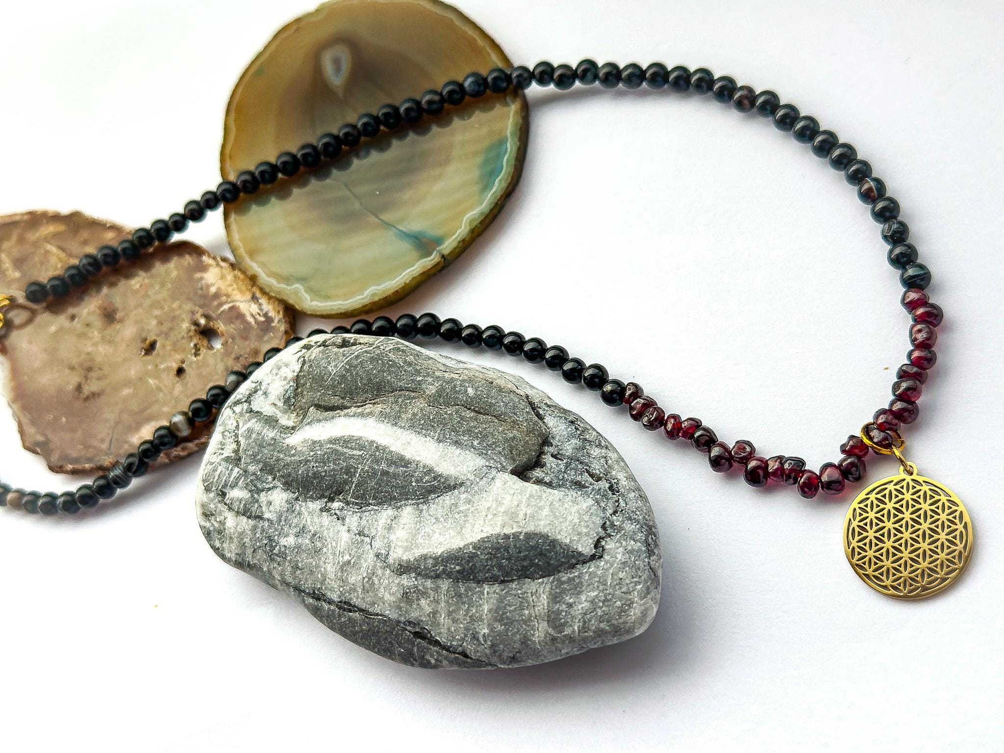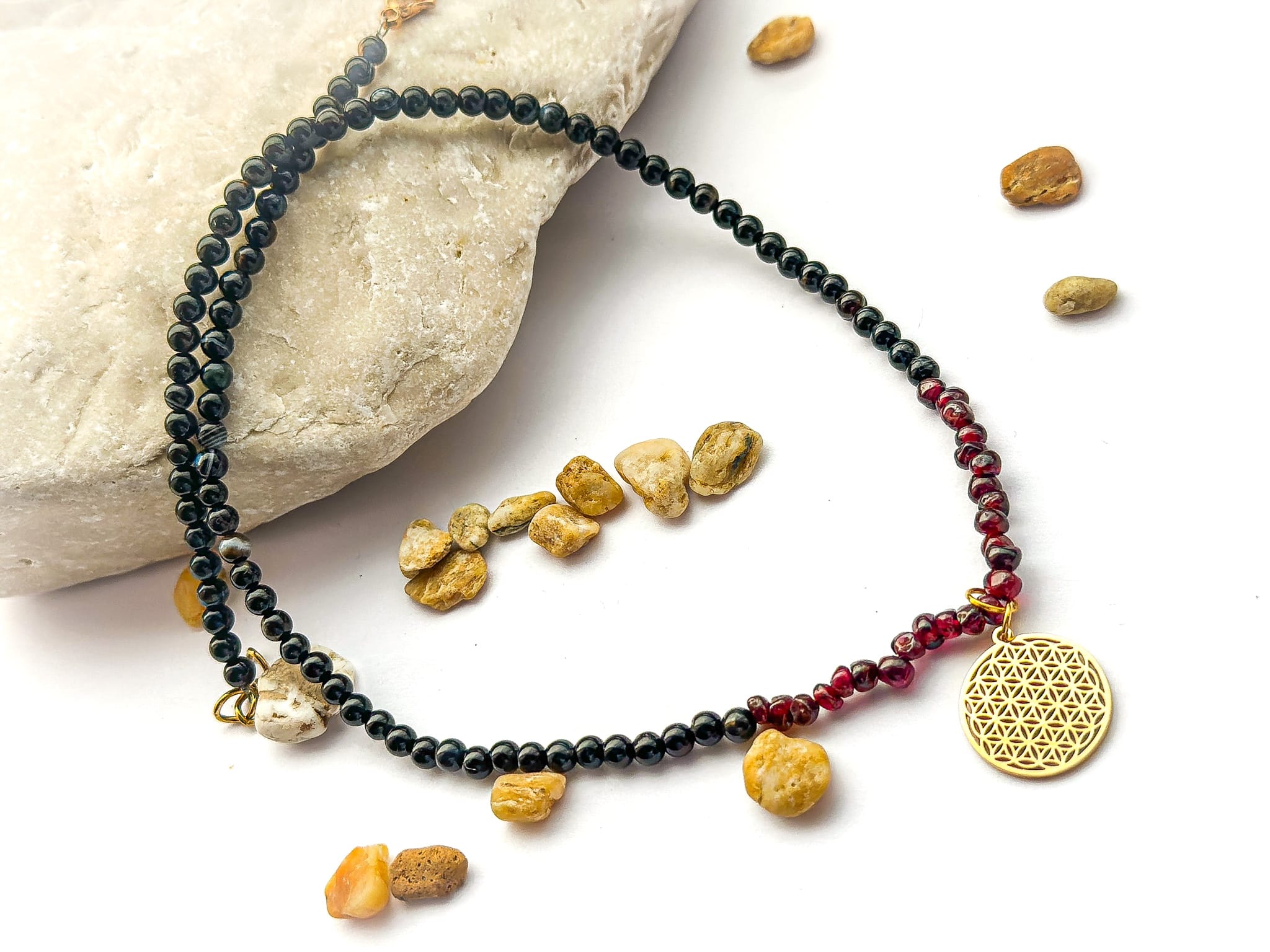 Granat jest symbolem ognia, życia i pasji. Wspomaga przepływ energii przez ciało, aktywując siłę wewnętrzną i wspierając dążenie do celów. Jego energia działa jak iskra, która rozpala entuzjazm i pozwala iść naprzód, nawet w najtrudniejszych momentach. To kamień, który przypomina, że każda transformacja wymaga odwagi i determinacji, ale prowadzi do wzrostu i spełnienia.