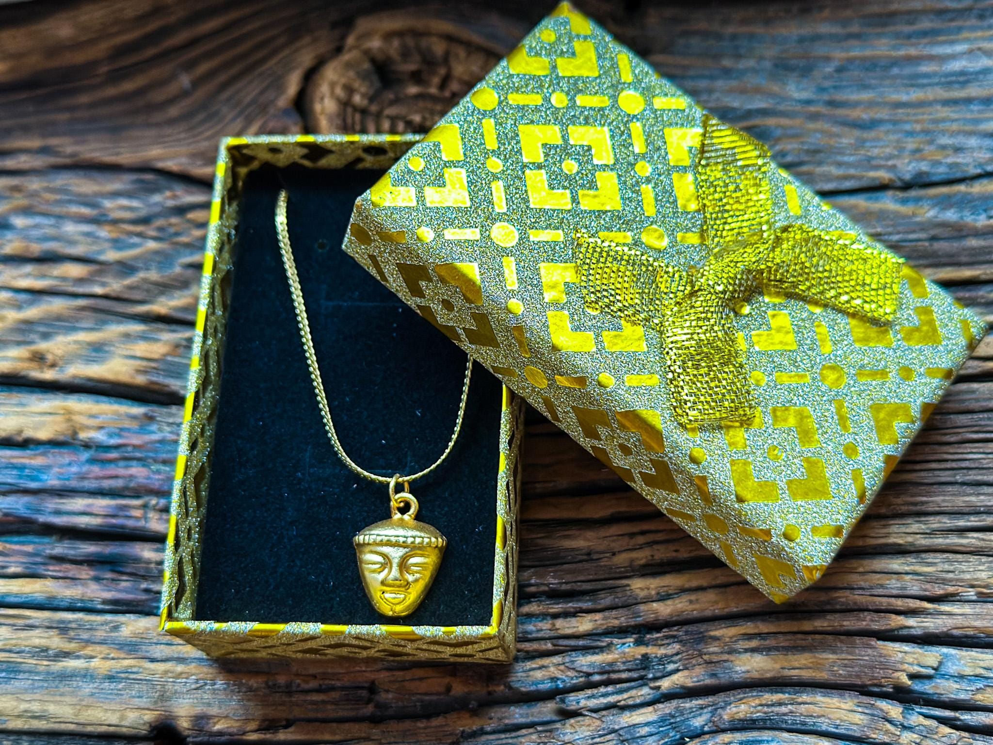 Zawieszka do naszyjnika – replika wzorów prekolumbijskich z łańcuszkiem  pakowana w pudełeczko zielone