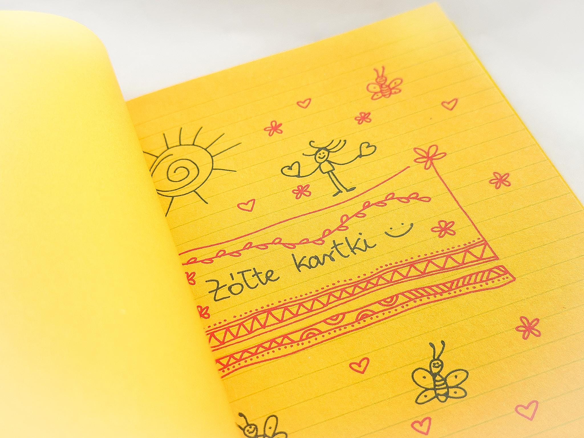 Pierwsza żółta kartka powstała w poniedziałek 18 czerwca 2012 roku. To był spontaniczny pomysł. Chciałam zamieścić na Facebooku coś napisanego odręcznie, znalazłam blok z żółtymi kartkami przywieziony kilka lat wcześniej z Londynu i moim ulubionym piórem wiecznym napisałam: